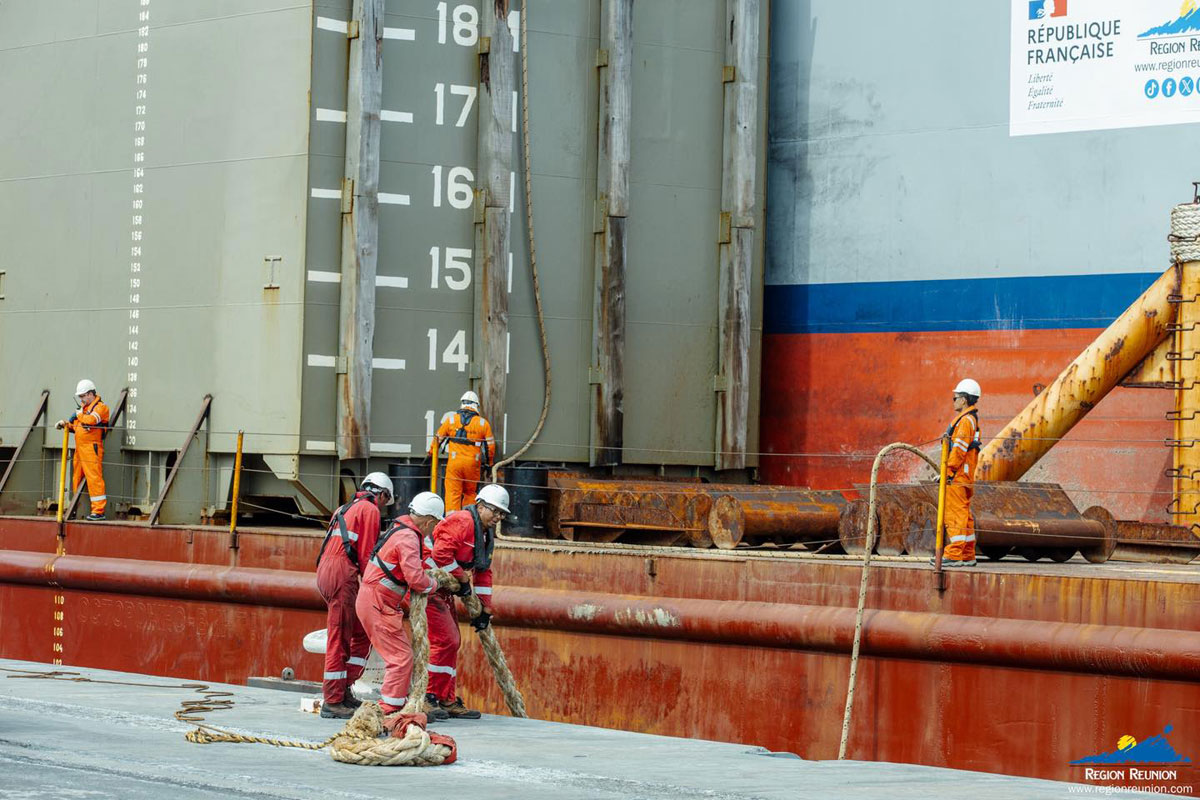 En provenance d’Afrique du Sud, le Titan a fait l’objet d’importants travaux de modernisation : mise aux normes techniques, rénovation complète des équipements et essais d’immersion réussis. Grâce à cette infrastructure, des services de maintenance jusque-là indisponibles à La Réunion pourront désormais être assurés sur place, 𝐫𝐞𝐧𝐟𝐨𝐫𝐜̧𝐚𝐧𝐭 𝐚𝐢𝐧𝐬𝐢 𝐥𝐞 𝐝𝐞́𝐯𝐞𝐥𝐨𝐩𝐩𝐞𝐦𝐞𝐧𝐭 𝐝𝐞 𝐥𝐚 𝐟𝐢𝐥𝐢𝐞̀𝐫𝐞 𝐝𝐞 𝐫𝐞́𝐩𝐚𝐫𝐚𝐭𝐢𝐨𝐧 𝐧𝐚𝐯𝐚𝐥𝐞.