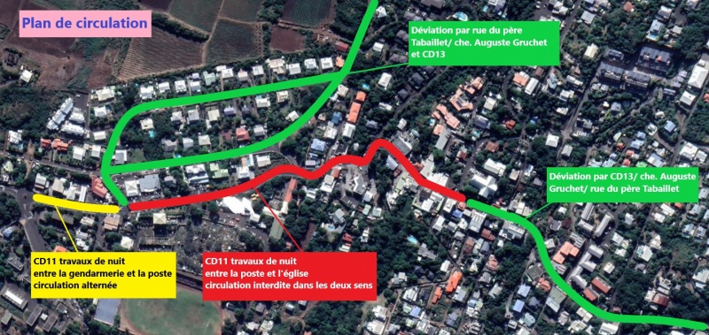 - De la poste jusqu’à l’église de Piton, la circulation sera interdite. Les usagers devront emprunter les déviations mises en place par la rue du père Tabaillet et le CD13.