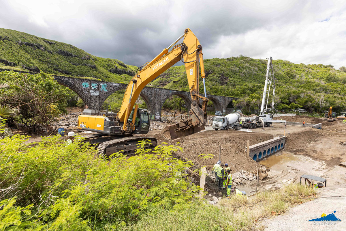 Des travaux d’urgence ont été menés par la Région Réunion afin de rétablir au plus vite la circulation avec la construction d’un radier provisoire dans le lit de la ravine, avant, à plus long terme, la reconstruction complète d’un pont pérenne.